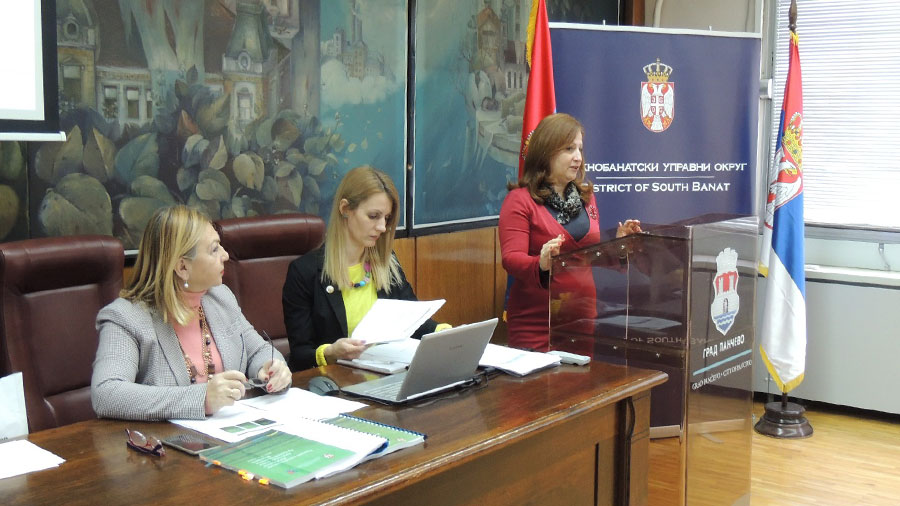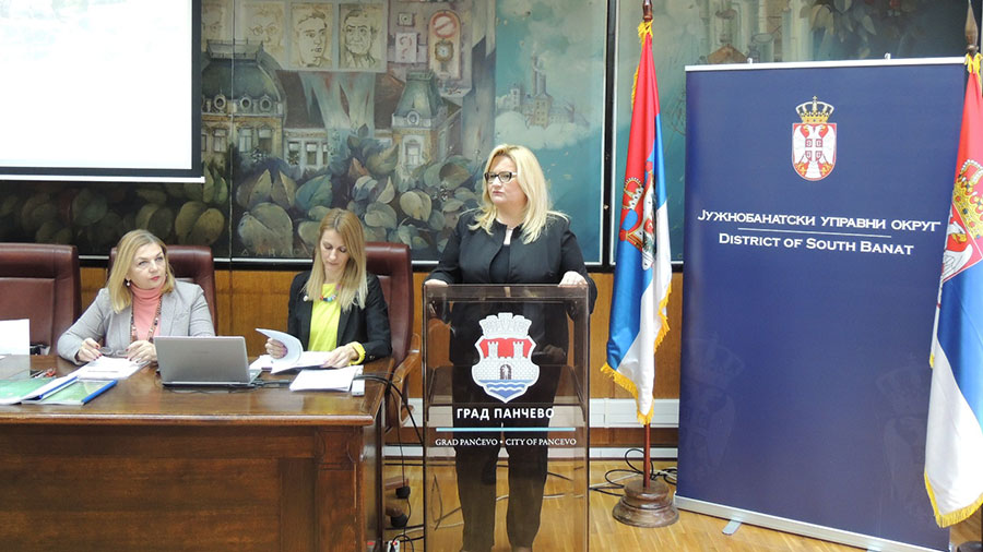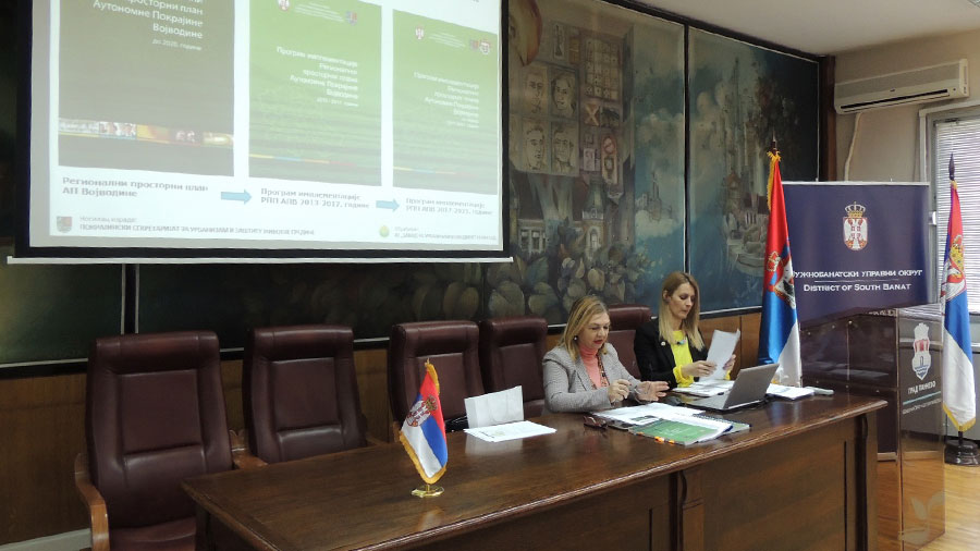 У уводној речи присутнима су се обратиле начелница Јужнобанатског управног округа Данијела Лончар и Софија Шумаруна, виши саветник за просторно планирање у Покрајинском секретаријату за урбанизам и заштиту животне средине и презентовала активности у поступку израде Радне верзије Нацрта Програма имплементације Регионалног просторног плана Аутономне покрајине Војводине за период 2017 - 2021. године. Затим су представнице обрађивача, одговорни планер мр Драгана Дунчић, дипл. просторни планер и Наташа Симичић, дипл. просторни планер, представиле Радну верзију Нацрта Програма имплементације Регионалног просторног плана Аутономне покрајине Војводине за период 2017-2021. године.