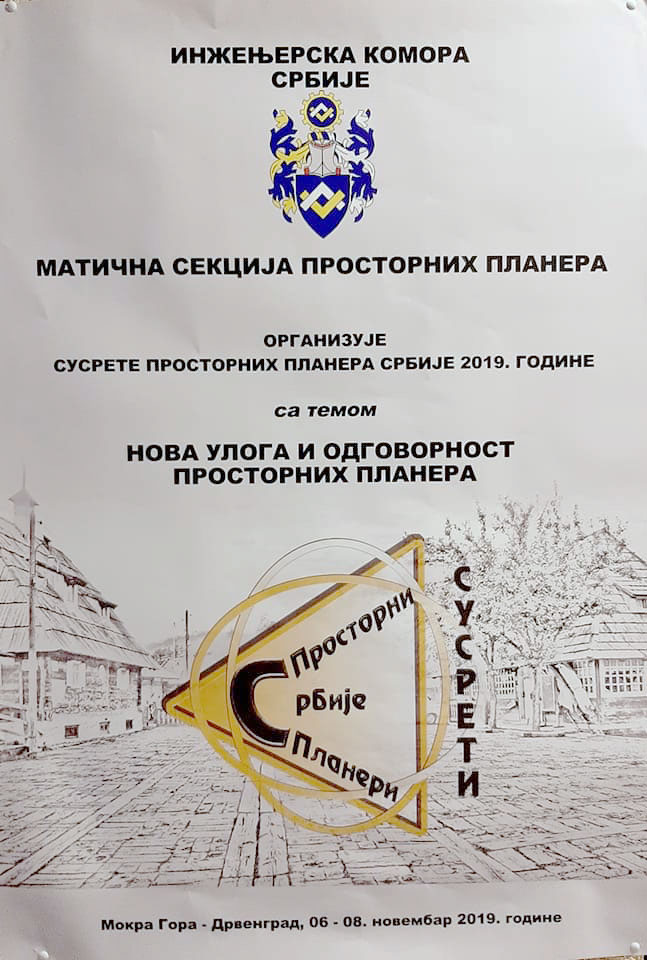 У организацији Инжењерске коморе Србије – Извршни одбор Матичне секције просторних планера, традиционално је одржан скуп „Сусрети просторних планера Србије - 2019“, на тему „Нова улога и одговорност просторних планера“ од 06 - 08. новембра 2019. године, на Мокрој Гори.