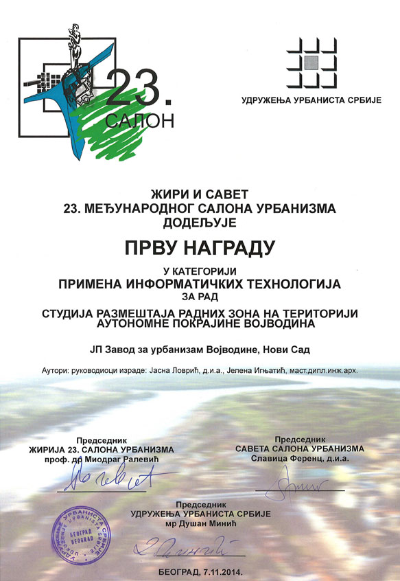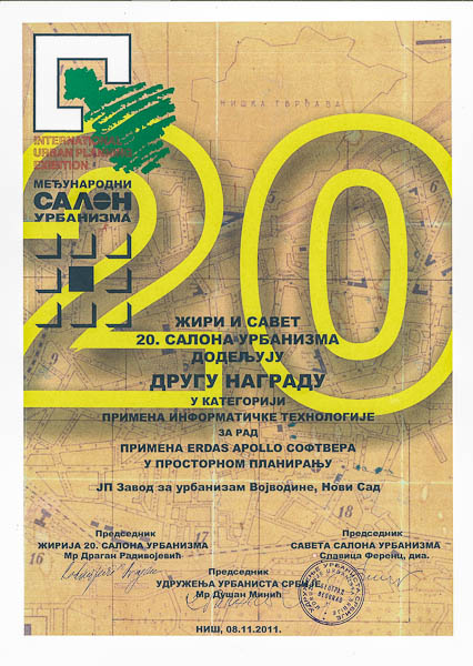 Друга награда у категорији примена информатичке технологије, додељена је ЈП Заводу за урбанизам Војводине, за рад: