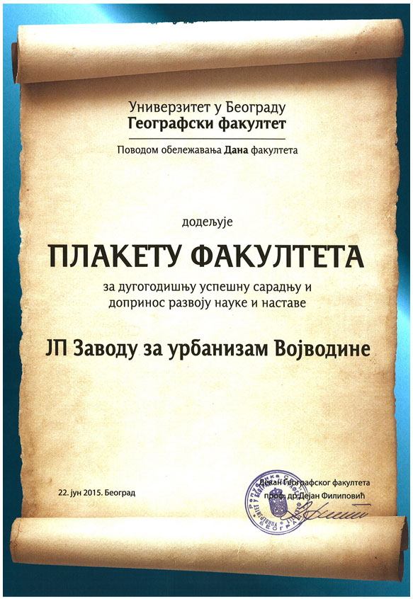 Плакета факултета за дугогодишњу успешну сарадњу и допринос развоју науке и наставе