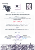 Прва награда у категорији просторни планови градова и општина, додељена је Свјетлани Реко дипл.инж.арх. и Владимиру Пихлеру дипл.инж.арх., за рад: